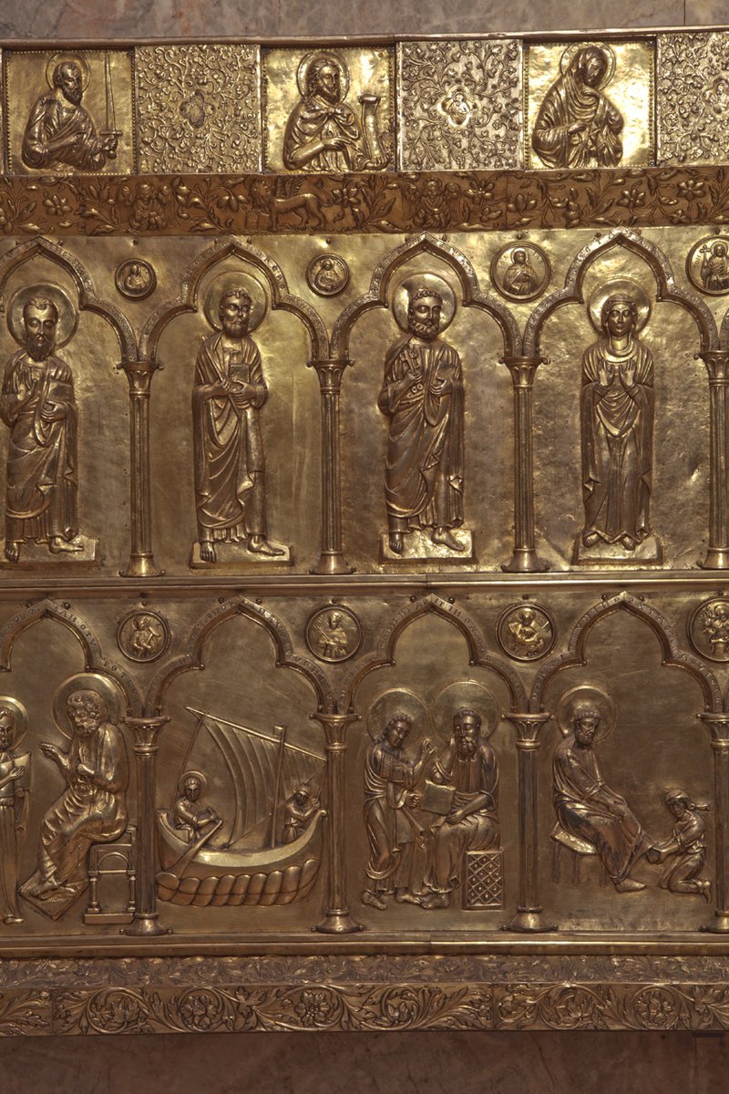 Frente de Altar veneziano de São Marcos com bustos de santos e cenas da vida de São Marcos